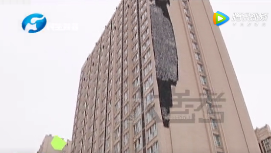 3月6日,河南鄭州。據河南廣播電視臺民生頻道,因大風天氣,一高樓外墻保溫層大面積脫落,滿地殘渣,視頻顯示,大樓側面墻體內部材料裸露在外,樓下的多輛車被砸受損。
