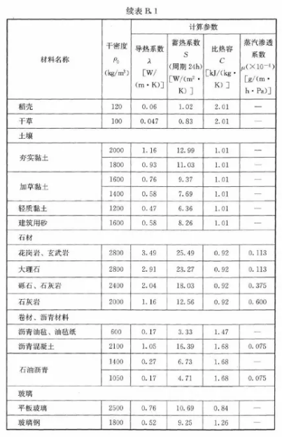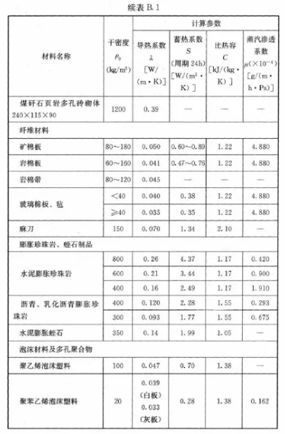 —— 附表 GB 50176-2012中對保溫材料的熱工參數 ——