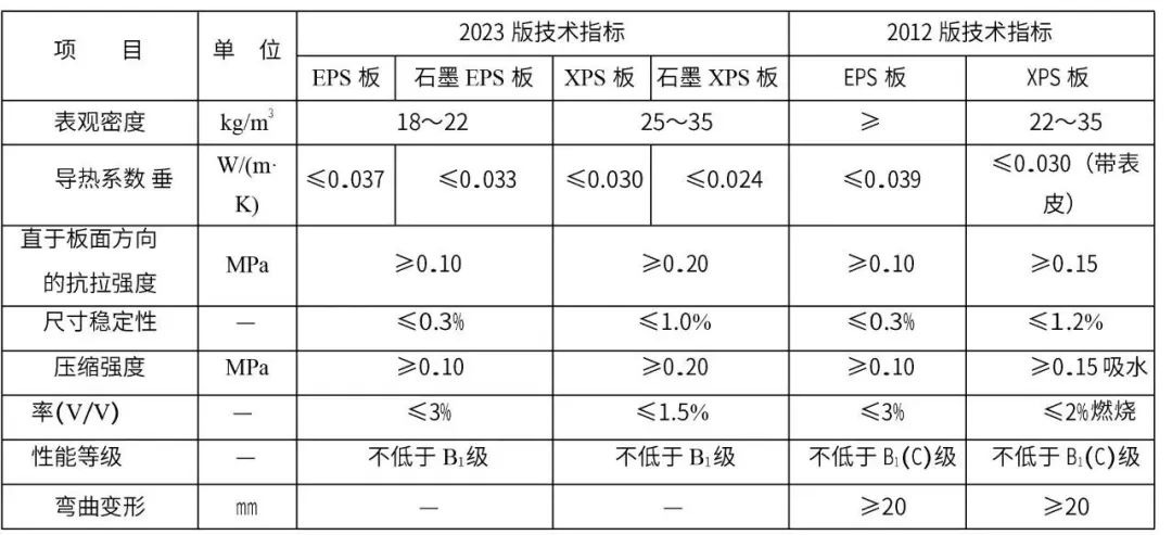 2023 版中增加了硬泡聚氨酯板、酚醛泡沫板、真空絕熱板三種保溫板,其性能指標分別符合現 行行業標準《硬泡聚氨酯板薄抹灰外墻外保溫系統材料》JG/T 420、《酚醛泡沫板薄抹灰外墻外保溫 系統材料》JG/T 515、《建筑用真空絕熱板》JG/T 438 的規定。