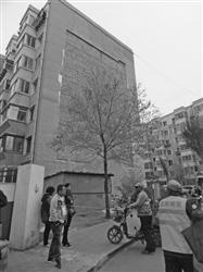 昨日下午1時30分左右,記者來到該小區門口。從外觀看這幢樓西側的墻皮都有不同程度的脫落,砸落在地面上的墻皮約10厘米厚,最大的一塊至少有10余平方米。
