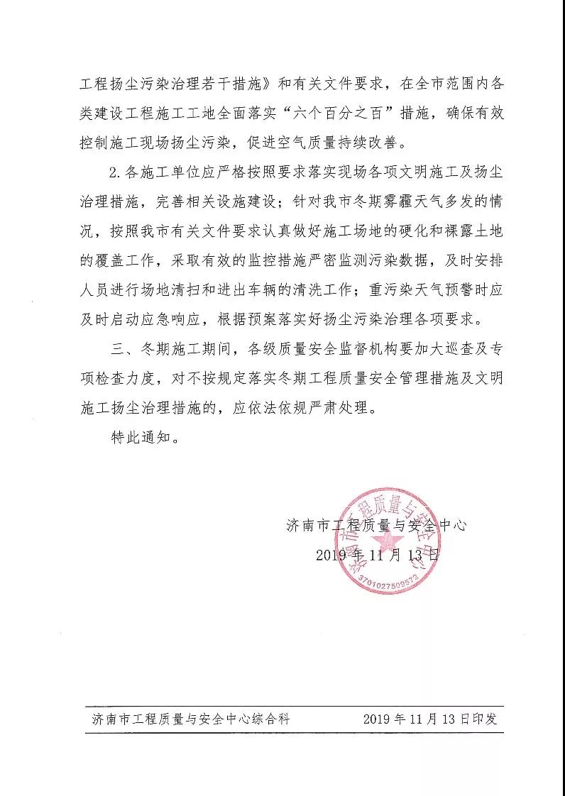 11月13日,濟南市工程質量與安全中心發布了《關于進步一加強房屋建筑工程冬期施工質量安全管理工作的通知》,對冬季外墻保溫施工、防水等提出了要求,具體通知如下: