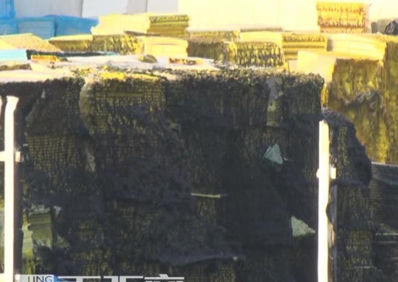 工廠過火面積超過100平米,外面堆放的泡沫半成品燒毀,因為火勢較大,車間外墻也被燒黑。工人說,因為工廠是生產保溫材料的,易燃物品比較多,因此對防火比較慎重。工廠規定嚴禁工人在車間吸煙,違規一次罰款500元。另外,每天早晚都會灑水潑地,防止發生火災。這次火災原因,他們也不清楚。