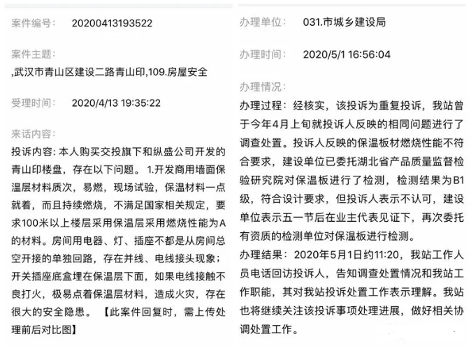 御江一品青山印的業主發現了一個嚴重的問題:開發商使用的墻體保溫材料,阻燃性能可能不達標。