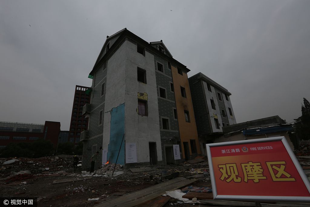 2017年9月29日,下午兩點(diǎn)整,杭州江干區(qū)彭埠街道七堡社區(qū)兩幢磚混結(jié)構(gòu)民房突然起火。浙江消防總隊(duì)和杭州消防支隊(duì)防火專家經(jīng)過大量的周密準(zhǔn)備工作,設(shè)立了這場(chǎng)模擬火災(zāi)實(shí)驗(yàn)。
