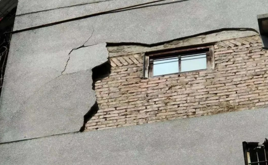 當(dāng)時“轟”一聲,把二樓雨篷砸爛了,砸破了,幸好下面沒有人,響聲很大,看外墻又要脫落。——市民