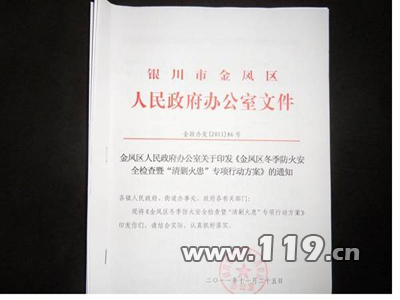 進(jìn)一步深化消防安全“五大”活動(dòng),全面推進(jìn)“清剿火患”戰(zhàn)役,有效預(yù)防和減少各類(lèi)火災(zāi)事故的發(fā)生,堅(jiān)決遏制重特大火災(zāi)尤其是群死群傷惡性火災(zāi)事故,確保寧夏銀川市金鳳區(qū)冬季消防安全形勢(shì)平穩(wěn),近日,銀川市金鳳區(qū)人民政府下發(fā)了《冬季防火安全檢查暨“清剿火患”專(zhuān)項(xiàng)行動(dòng)方案》,全面部署開(kāi)展冬季防火安全檢查暨“清剿火患”專(zhuān)項(xiàng)行動(dòng)。