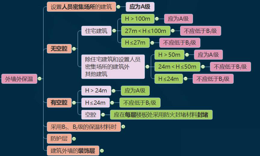 現(xiàn)在建筑外墻外保溫應(yīng)用較多,形式也更多樣,分為無(wú)空腔和有空腔。除了人密必須A級(jí)之外,其他建筑首先要看是有空腔,還是無(wú)空腔再來(lái)確定保溫材料的最低耐火等級(jí)。有空腔因?yàn)槿菀自诳涨徊课划a(chǎn)生煙筒效應(yīng)更加危險(xiǎn),要求比無(wú)空腔也更加嚴(yán)格。