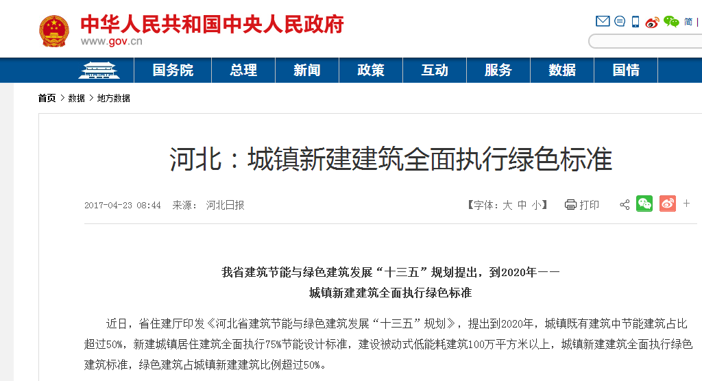 全面執行綠色建筑標準。“十三五”期間,各市(含定州、辛集市)創建一批20萬平方米以上,各縣(市)創建一批10萬平方米以上高星級綠色建筑品牌小區。獲得綠色建筑評價標識項目中二星級及以上項目比例超過80%。實施建筑全產業鏈綠色供給行動,到2020年,城鎮新建建筑中新型建材應用率達到80%,綠色建材應用率超過40%。